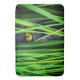 Este tapete de morcegos tem um gato preto esgueirando-se na grama.