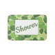 Step out of the shower in style with this fun bathmat that features a trendy retro-style ovals pattern in multiple shades of green accented with customizable text that says, "Shower." Modify the text with your own sentiment to create a one-of-a-kind gift for new homeowners, a unique accessory for your own home, or a fun addition to a dorm room shower.