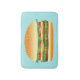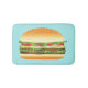 Este tapete de banho apresenta uma ilustração deliciosa de um hambúrguer. O hambúrguer é feito de carne, alface verde, tomate vermelho, cebola, fatia de queijo e alguns picles. O pão parece recém assado e tem algumas sementes de sésamo em cima dele.