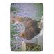Este tapete de chão suave possui duas galinhas wyandotte lacradas de ouro, posando em frente à bonito idade roxa russa.