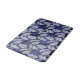 Folhas brancas de palma sobre fundo azul-indigo, em camadas com mais frondes de palma azuis.