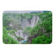 Pintura a óleo de grandes cachoeiras no Parque Nacional dos lagos de Plitvice, Croácia. Cascata de duas grandes cachoeiras no verão. Paisagem de cascata de floresta nas montanhas.
