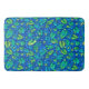 Bath Mat com padrão floral colorido - flores lírios de lagoa amarela, folhas verdes largas e libélulas azuis. A textura desenhada à mão é elaborada a partir do desenho da vida. © Julia Khoroshikh www.juliakhoroshikh.art #cowllírios #yellowpondlily #nupharlutea #brandygarrafa #wildlfower #floralpattern #floralprint #batimats #batiroomdecor #zazzlemade