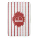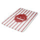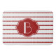 A esteira scalloped-listrada carmesim na moda de vermelho & branca de banho, personaliza com sua inicial na etiqueta vermelha de harmonização.