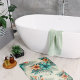 Traga um toque refrescante do paraíso para o seu banheiro com o tapete de banho tropical. Apresentando um design tropical macio e pastel com folhas delicadas e cores claras e claras, este tapete de banho cria uma atmosfera serena e calmante no seu espaço. Feito com material de pelúcia, absorvente, ele proporciona conforto e durabilidade enquanto complementa a decoração costeira, tropical e inspirada em boho. Perfeito para adicionar uma leve explosão de encanto tropical ao seu banheiro, este tapete oferece estilo e funcionalidade.