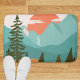 Introducing our Modern Abstract Forest, Mountains, and Sunrise Bath Mat. Featuring nature landscape illustration in vintage style. Suitable for as a gift for nature lovers.