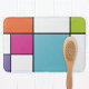 Inspirado pela icônica pintura Tableau de Mondrian, este batmat moderno é uma celebração de formas geométricas arrojadas e cores claras e frescas, de azul, rosa, laranja e verde.