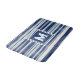 Toneladas frescas e brilhantes de azul e branco neste design striped com uma caixa de monograma para um solteiro inicial.