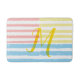 tapetes monogramas. Personalize com seu original em um roteiro amarelo ensolarado contra o padrão de faixas horizontais cor-de-rosa, amarelas e azuis. Legal sensação de "praia de verão". Comece todos os dias de bom humor ensolarado. Arte original de TamiraZDesign.