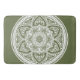 Esta mandala branca senta-se sobre um musgo escuro ou fundo verde-oliva. As cores são harmoniosas e equilibradas. Parte da Coleção Bardh Mandala.
