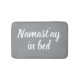 Namastay in bed funny light grey designer bath mat . Create your own unique hand lettered rug with custom quotes. Elegant calligraphy typography template. Beautiful handwritten bathroom decor. Beautiful handwriting design with swirly text. Funny Holiday or Birthday gift idea for yoga lover, lazy person, couple, boyfriend, husband, wife, bride, girlfriend, friends, family etc. Customizable colors. Relax humor.