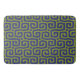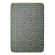 Olive green and blue abstract pattern bath mat.