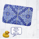 Adicione estilo ao seu banheiro com este lindo e elegante tapete de banho branco e azul, com um padrão tradicional de azulejo cerâmico mediterrânico. No espírito dos melhores azulejos azulejo, portugueses, espanhóis e marroquinos, o motif é composto por uma série agradável de linhas geométricas e espirais. Um pop de cor fresco e original para o seu espaço!
