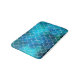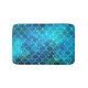 Um tapete de banho fluffy com um padrão de sereia criado digitalmente, em camadas sobre um fundo de galáxia azul e verde. Perfeito para um banheiro feminino que adora sereias!