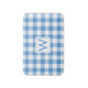 Tapete De Banheiro Padrão de Gingham Branco e Azul Claro com Monogram