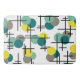 Uma era atômica retrorreflectora inspirou um padrão com teal, turquesa, cinzas e círculos de moléculas amarelas, juntamente com o meio século moderno chamado negrito.
