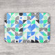 Este tapete de banho apresenta um padrão geométrico colorido, sem costura, com formas em tons pretos, azuis e verdes em branco. Procure toalhas e cortinas de chá correspondentes na coleção.
