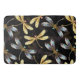 Padrão sem costura com ouro, joias, libélulas brilhantes com asas brilhantes e detalhadas sobre fundo preto. Dourada libélula.