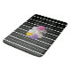 Este delicado buquê de pincéis apresenta cores pastéis macios de amarelo, púrpura, rosa e branco. A disposição colorida é definida sobre um fundo de faixas pretas e brancas, em negrito, com uma faixa fina e verde de sotaque.