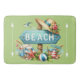 A Beautiful Tropical Bathmat Of Sea Shells and Palms In Pastel Colors Teal, White And Green Perfect For The Beach Or Lake House