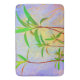 A cena tropical em cores pastéis neste grande tapete de banho foi feita a partir de uma fotografia original de ZoeSPEAK. A foto olha para os caules longos e finos das plantas enquanto a luz do sol brilha através de suas folhas verdes-claras. O fundo azul claro está colado com amarelo e salmão rosa.