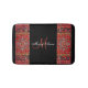 Este espantoso tapete de banho apresenta duas largas tiras de um tradicional tapete oriental persa vermelho. O fundo é preto e você o personaliza no centro com seu nome e inicial. A cor do tapete é principalmente vermelha, mas também inclui preto, bronzeado, branco e azul. Também no meu compro há muitas outras questões de coordenação!
