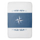Uma faixa vertical azul possui uma bússola central, flanqueada por floreios decorativos simétricos de ambos os lados. O design combina formas geométricas com padrões intrincados e curvantes para composição náutica.