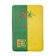 Esta design apresenta a bandeira da província canadense de Saskatchewan. Apresenta bandas horizontais de verde e amarelo: diz-se que o verde representa as zonas arborizadas pelo norte da província e que o amarelo representa campos de grãos na região meridional. Em direção à direita está uma ilustração de um lírio prairie, que é uma flor nativa do norte-americano, e em direção à esquerda está o casaco de braços de Saskatchewan. Cerca de metade da população da província vive nas duas maiores cidades, Saskatoon e a capital provincial Regina.