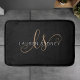 Escrita Feminina Dourada Negra Moderna Monogramada Bath Mat. Personalize facilmente este moderno tapete elegante com o seu monograma e nome personalizados.