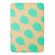 Este tapete de banho apresenta uma ilustração feita à mão de folhas marinhas grandes e simples turquesas, como pegadas na areia laranja úmida de uma ilha no Mar Mediterrâneo.
