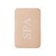 Bath mat mostrado em uma cor sólida de rosa esbranquiçado com texto branco SPA. Personalize este item e talvez adicione seu nome a ele ou ao comprar como está.