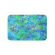 Este lindo tapete de banho apresenta um desenho abstrato feito com muitas camadas de tons de azul, turquesa, violeta verde e azul em vários graus de opacidade. Você encontrará uma cortina de chá, um dispensador de sabão e porta-escovas de dentes na minha loja.