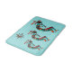 Decorem seu banheiro com este único "Um dos tipos" do sudoeste de Kokopelli Bath Mat! Ele apresenta três Kokopelli sudoeste em Turquoise, Laranja e Negro, tocando flauta e dançando sob o sol no fundo de turquesa! Este Kokopelli Bath Mat tem uma Cortina de Chá e Conjunto de Toalhas Correspondentes! Este é um Design de Arte Original do Artista Kerry Miller.