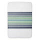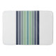 Retro/mod divertido, marinho azul, chato e tapete verde-listrado dá essa sensação divertida de 70's/anos 80 ao seu banheiro. Simples e minimalista, é um brilhante, mas calmo pop de cor que se mistura bem com muitos estilos de design, do retrô à transição para o náutico.