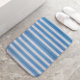 Este tapete de banho bonito tem listras azuis e brancas em tamanhos variados em um padrão simples e moderno listrado. É perfeito para uma decoração moderna do banheiro, ou só ter uma pop de cor no decorrer do ano durante o seu chá matinal. Também seria fofo para o banheiro de um menino.