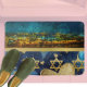 O trabalho de arte apresenta um design de mídia mista. A parte superior mostra uma ilustração da pintura a óleo de Jerusalém em Israel à noite, separada por uma fita de ouro. A seção inferior inclui ilustrações em tons azuis de corações e estrelas ouros, referenciando a estrela de David. A composição global caracteriza-se pela elegância e sofisticação. Quer a utilize durante Chanukah ou pelo amor de Jerusalém e da Terra Santa de Israel em qualquer altura do ano, isto será um excelente adicional a qualquer decoração.
