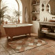 Terracotta Earth Tone Moroccan Quatrefoil Pattern Bath Mat. Add warmth underfoot with this earthy, boho-inspired bath mat. Featuring a repeating Moroccan-style tile pattern in rich terracotta, beige, and soft neutral tones, it brings a cozy, rustic charm to your space. Perfect for creating a relaxed, stylish, and inviting bathroom atmosphere.