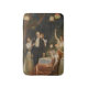 This design features a painting by the English artist and writer John Collier (1850–1934). "The Garden of Armida" is a richly atmospheric genre painting that unfolds in a moonlit garden illuminated by the warm glow of hanging lanterns. Rather than depicting the mythological sorceress Armida of Torquato Tasso’s epic poem, Collier reimagines the title of the painting as a metaphor for a social, sensual and faintly theatrical setting. The garden becomes a stage for human interaction, charged with emotion and subtle tension. The soft radiance of the lanterns gives the entire scene an intimate, almost dreamlike quality, drawing the viewer into a world that feels both inviting yet faintly otherworldly. At the center of the composition stands a solemn, formally dressed man whose expression contrasts sharply with the lively energy surrounding him. He is flanked by four women, each dressed in elegant gowns, whose gestures and body language create a sense of closeness and festivity. One woman raises her glass in a light-hearted toast, capturing the spirit of celebration; another leans comfortably against the man’s shoulder as though familiar with him; the third rests her arm gently around him in an affectionate, possibly flirtatious manner; and the fourth woman is toasting her glass a few steps away. Their interactions form a center of movement and attention around the otherwise reserved central figure, heightening the emotional complexity of the scene. The setting contributes significantly to the painting’s mood. Behind the figures, the garden recedes into lush darkness, its forms only hinted at by the dim lantern light. This shadowy backdrop emphasizes the brilliant colors and textures of the characters’ clothing and the warm illumination that binds them together. The contrast between the dark, mysterious surroundings and the glowing group creates an atmosphere of Romantic allure, suggesting a world suspended between celebration and introspection, public festivity and private feeling. It is a moment of social intimacy set against the quiet mystery of a night garden, inviting viewers to wonder about the relationships among the figures and the unspoken stories that unfold in the warm lantern light. "The Garden of Armida" was originally painted by John Collier circa 1899.