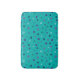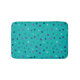 This bath mat features hand-drawn tiny hearts in shades of purple, blue and teal on turquoise.