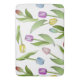 O design do produto apresenta um padrão de flores tulipas coloridas em roxo, vermelho, rosa, azul e amarelo. Esta ilustração botânica faz um tapete de banho moderno e único.