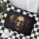 Três crânios se encaixam num pano de fundo de todo preto. Uma pequena criatura espreitando pelo crânio do meio.