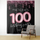 Espanto de fundo da cabine de festa de aniversário 100ª, bonito, com fundo preto de tendências, brilho e confete, 100 balões de hellio rosa, seu nome e data.