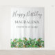 Create a special keepsake when your guests have a photograph with the birthday celebrant. This festive Christmas backdrop features green holly and red berries. All of the text is editable so you can easily craft your own special mood.
