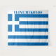 A bandeira nacional de Grécia tem nove faixas horizontais iguais de azul alternando com branco, com um quadrado azul com uma cruz branca, que aparece no canto superior do lado do gancho. Azul significa céu e mar e oportunidades ilimitadas. Branco: representa nuvens no céu e ondas no mar e progresso perpétuo. A Cruz simboliza a Igreja Ortodoxa Grega, a religião estabelecida da Grécias. #tapeçaria #bandeira #grécia #ilovemykonos