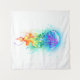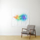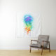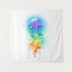 Água-viva grande, iridescente, desenhada artisticamente, brilhante, com longos tentáculos em branco, pintada sobre fundo de aquarela multicolorido. Água-viva arco-íris.