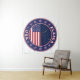 Crachá do Alasca com bandeira do Alasca e bandeira dos EUA cores, forma arredondada. Emblema do Alasca. Selo do Alasca. Coleção dos Estados Unidos.
