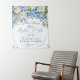 Design elegante e feminina "algo azul antes de eu fazer" com arranjos florais pintados por aquarelas, flores de hydrangea azul, verde e rosas brancas.
