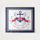 Âncora de barco náutica azul-marinho e vermelho-escuro e espirais azuis elegantes. Estandarte vermelho-escuro para monograma de casamento personalizado.