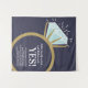 Fato moderno e azul escuro e tapeçaria na parede do anel de ouro e noivado de diamante. Ela disse que sim, noivado anel do muro da festa pendurado que pode ser personalizado com seu próprio nome e casais fatos divertidos. Outros itens correspondentes também estão disponíveis. © Original graphics ring design por www.mylittleeden.com e www.mylittleedenweddings.com no zazzle.