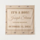 O tema design dos animais de estimação personalizados apresenta um fundo brando para a frase, "É um menino!" em letras castanhas. Também em caracteres castanhos está o nome do bebê e a data de vencimento. O fundo da design apresenta um padrão de imagem de animais de pelúcia, fofinho e bonitos, todos amontoados juntos, prontos para receber o bebê! Corresponde à coleção de "Animais Enchidos Cute".